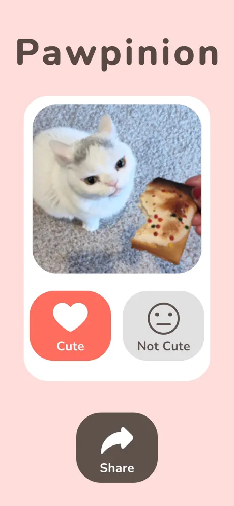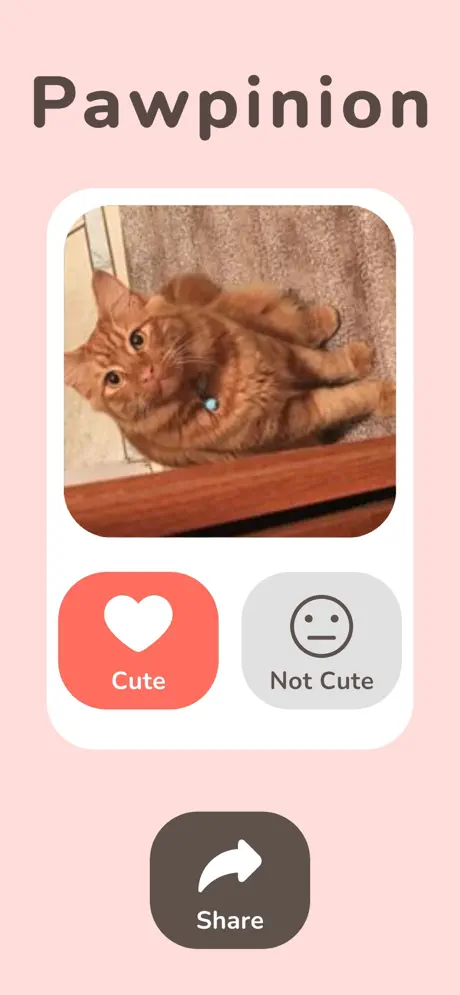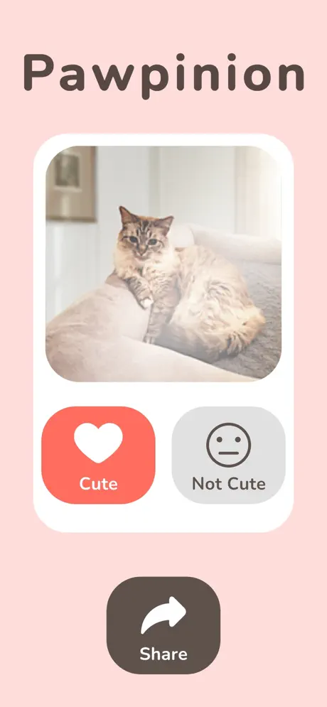 Welcome to Pawpinion – the ultimate app for cat lovers and cuteness connoisseurs! Get ready to swipe, laugh, and "aww" as you scroll through a never-ending stream of adorable (and occasionally odd) cat photos and GIFs. Your job? Decide if each feline is Cute or Not Cute
